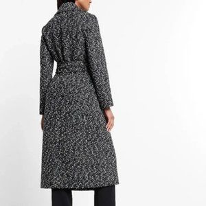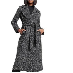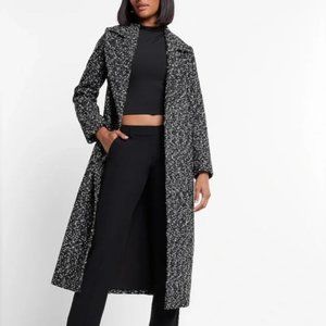 Express Black & White Lined Tweed Belted Trench Coat with Notch Collar & Pockets