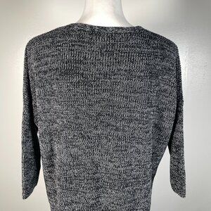 Express Black White Marled Deep V Neck Short Sleeve Pullover Sweater SP