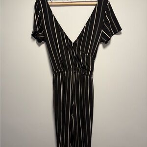 Express Black & White Pin Striped Jumpsuit | size MEDIUM
