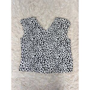 Express Black & White Polka Dot Print Womens Sleeveless Blouse V-neck Size XL