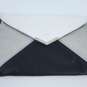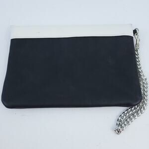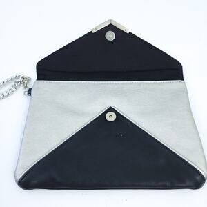 Express Black, White, Silver Envelope Purse Clutch Wristlet 9"L X 6.5"H, Chain