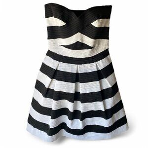 Express Black White Striped Bandage Scuba A Line Mini Dress Fit & Flare M