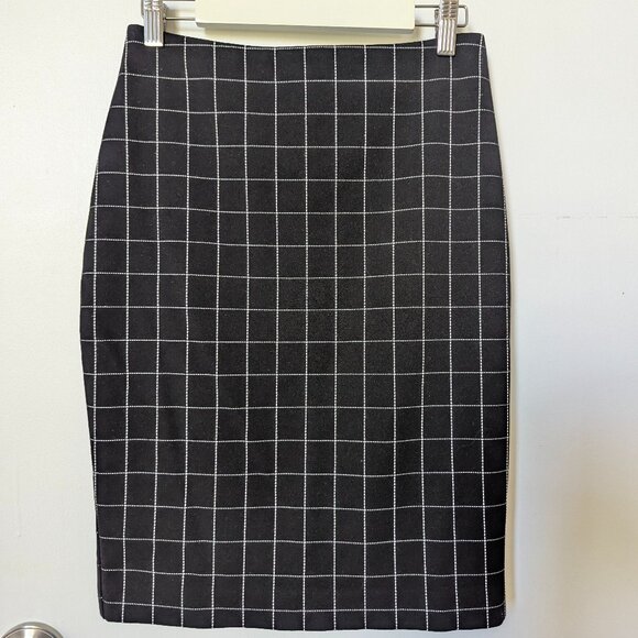 Express Black White Textured Windowpane Plaid Stretch Short Pencil