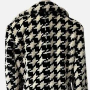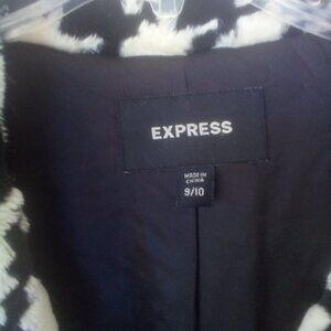 🎀Express Black & White/Cream Houndstooth Faux Fur Coat Size: 9/10