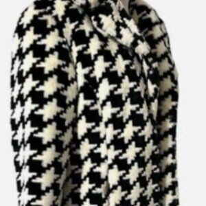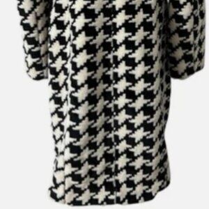 Wrap yourself in the sophistication of Express's black and white houndstooth overcoat. The coat, suited for women's size 9/10, features a timeless houndstooth pattern. Crafted from a blend of acrylic, nylon, and polyester, this overcoat promises both comfort and durability and the fleece fabric provides a soft touch, while the light fabric wash ensures a flattering fit without compromising on warmth for both Fall and Winter!🍁🍂