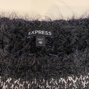 This Express sweater showcases a stylish gradient from black to gray, crafted in a cozy crew neck design. The soft, plush texture ensures warmth and comfort, making it a perfect addition to your wardrobe. Its classic long sleeves and consistent knit pattern offer a timeless appeal.