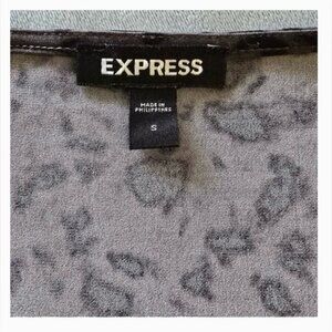 Chic blouse with a black and gray pattern. Elegant, draped design. Ideal for versatile styling.