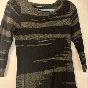 Express Black and Olive Green Sweater Dress 3/4 iSleeve Crew Neck size petite S