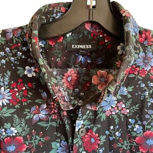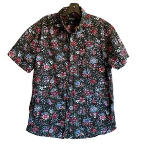 This Express shirt combines a sleek black base with a touch of red, offering a stylish and versatile option for casual wear. Its lightweight fabric ensures comfort, making it perfect for relaxed outings or social gatherings.