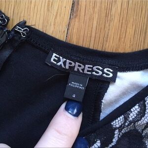 Up for sale is an awesome Black and Tan lace dress from Express. It is a size 4 and has a zipper closure in the back.