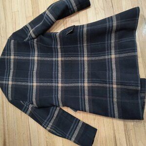 Express Black and Tan Plaid Wool Blend Trench Coat - Small - Excellent Condition