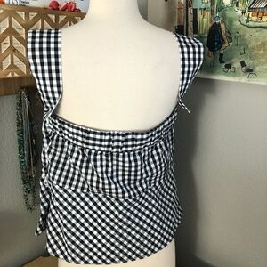 Chic off-shoulder design. Gingham pattern. (Wrap around tie is missing)
