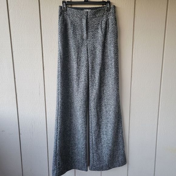 Stylish herringbone pattern. Wide-leg design. Perfect for any occasion.