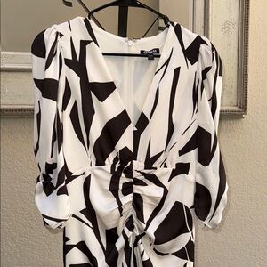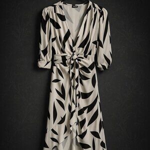 Stylish high low dress with a modern print. Features a wrap design and elegant flow. Ideal for versatile wear.