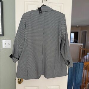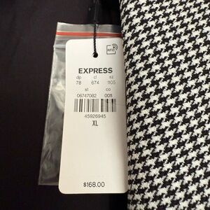 Chic blazer with a classic houndstooth pattern. Perfect for formal occasions. Express Black & White Houndstooth Double-Breasted Blazer – Size XL – NWT