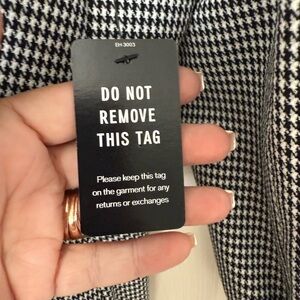 Classic and chic, this Express blazer is a wardrobe staple. Featuring a bold houndstooth pattern, double-breasted button front, and tailored fit, it’s perfect for both office and evening wear.