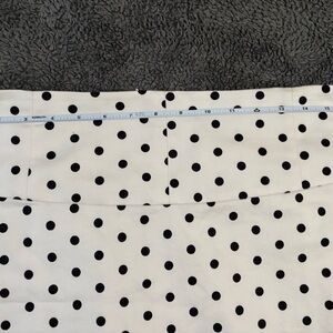 This sleek midi pencil skirt from Express features a classic black and white polka dot pattern, perfect for cocktail events. Its tailored fit and structured fabric ensure a sophisticated silhouette, making it a versatile addition to your wardrobe.