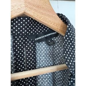 Super Flattering Size 6 Express Dress Can fit a 4, but maybe not an 8. Halter style with back opening, ruffles in the front. Half way down button.