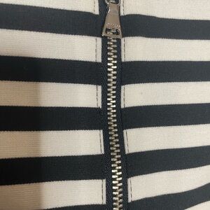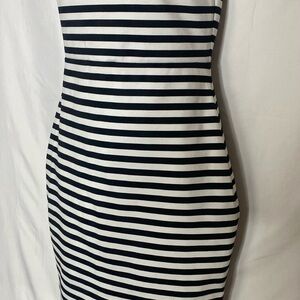 Chic strapless dress with bold black and white stripes. Perfect for stylish outings. Beautiful