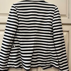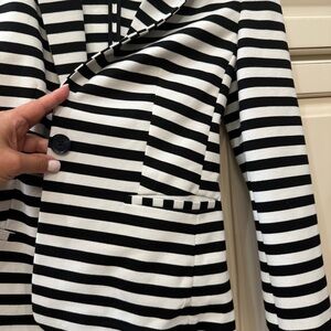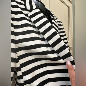 Women’s Express brand suit jacket sz XS. Black and white stripe. Stretchy. One black button. Pockets. So cute!