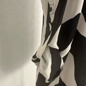 Chic button-down shirt with bold black and white stripes. Features a classic collar and front pocket.