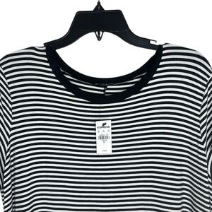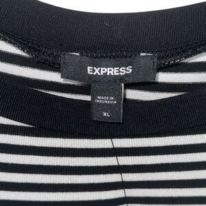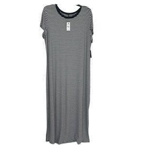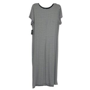 Express elegant black and white striped maxi dress perfect for any occasion. Comfortable and stylish, this dress is a must-have for your wardrobe. Classic short sleeve, scoop neck, 14' side split. New with tags. Size XL. Flat lay measurements are: shoulder to hem is 52" and pit to pit is 22".