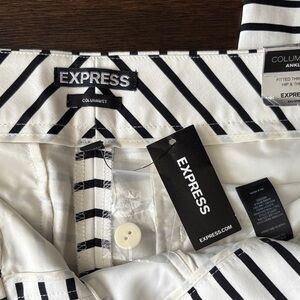 Chic cropped pants with black and white stripes. Perfect for a modern look.
