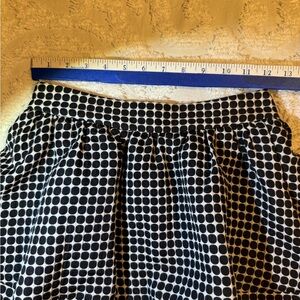 Stylish skater skirt with bold black and white circle pattern. Perfect for versatile styling.