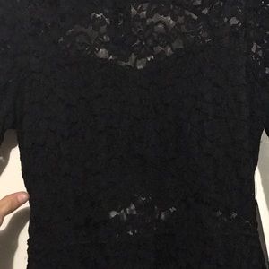Black lace dress with open back. New with tags, never worn. Doesn't fit. Really cute dress!