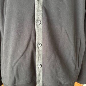 Express; Cardigan Jacket; Black w/Gray Trim; X-Large; V-Neck; Button Close; Front Pockets; Ribbed Cuffs & Hem; Fleece Lined; Sweatshirt Feel; 80% Cotton & 20% Polyester; Machine Wash & Tumble Dry