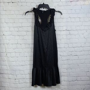 Express Black Silk Ruffle Slip Dress XS Women's Rosette Sleeveless Tank Sundress