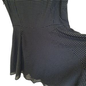Super cute Little Black Dress! Great for date night or a girl's night out. This LBD has a sheer top layer that is covered with tinny little studs and is fully lined. A sweetheart neckline shows through under the sheer mesh overlay.