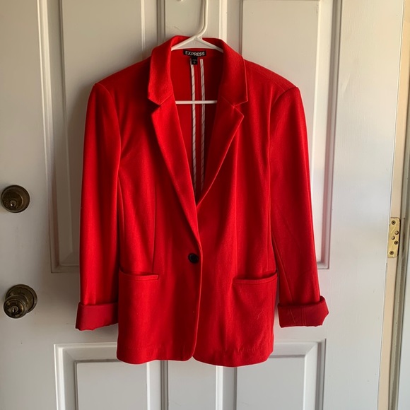 Beautiful red blazer from Express! Size medium. Worn once! Can wear it casually with jeans, happy hour, or dress it up for the office, or upcoming holiday season! Comes from a smoke free home.