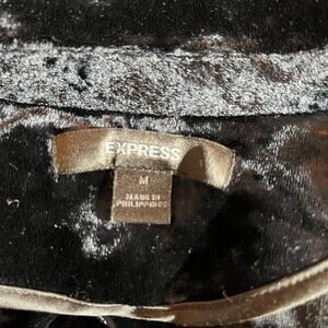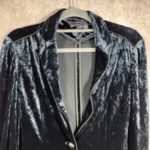 Express Blazer Jacket Womens Medium Bluish Black Velour One-Button Long Sleeve Collared Goth Rave