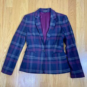 Express Blazer Plaid Single Breasted Single Button Blue Purple Gray (4)