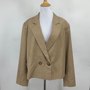 Express Blazer Womens XL Extra Large Stone Cropped Double Breasted Shoulder Pads