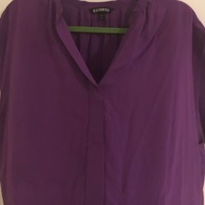 Comfortable button up (buttons are hidden) purple blouse. Loose and comfortable. Soft and multifunctional. Short loose sleeves and no damage!