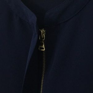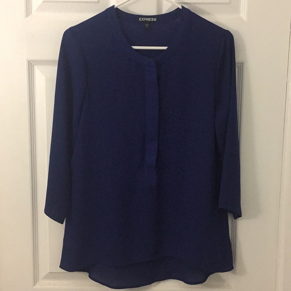 Excellent Used Condition. Royal blue blouse with sliver zipper in the front. 3/4 sleeves.