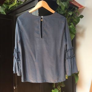 Worn once. Striped with belle sleeves. Medium weight, hangs beautifully or can be tucked in.