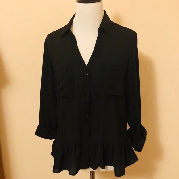 Black Express blouse with feminine detail hem✨