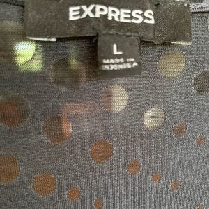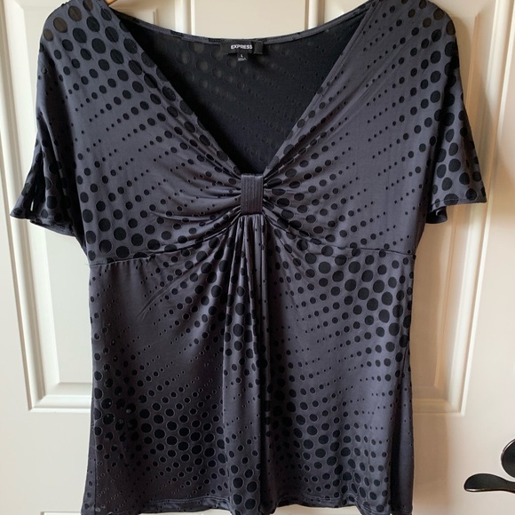 Gray short sleeve blouse with shear black dots. Great layered or worn alone. Only worn once.