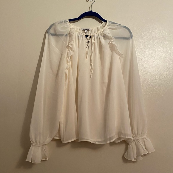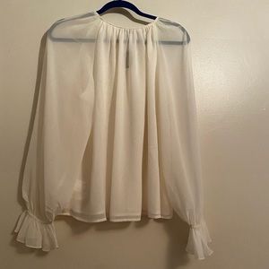 This chiffon top from Express is cute with a skirt or slacks for work or jeans for going out.. Add this to your fall closet! Romantic vibes!