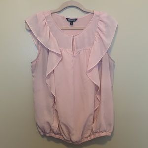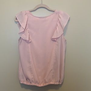 Cute soft pink top with clasp split v neck for open or closed styling options.