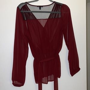 Express Blouse - maroon color, sinched waist with removable adjustable belt tie. Size medium. Never worn, pristine condition.