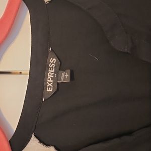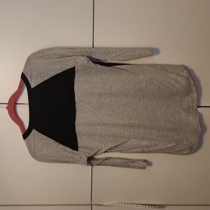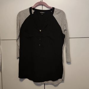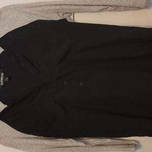 black and Grey Express baseball style quater length blouse. two tone/ multi texture with buttons and front pockets. The sleeves are stretchy