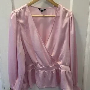 Bright Pink Wrap Blouse Size: XL