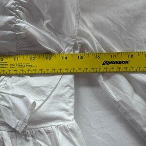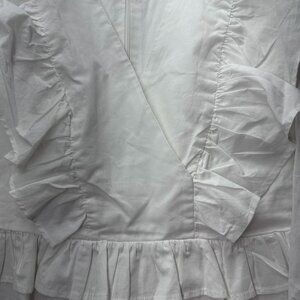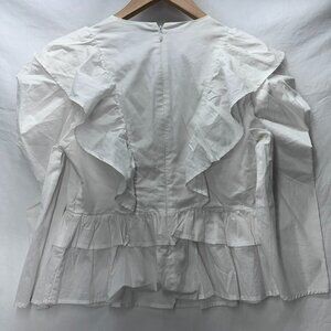 Express Blouse Crisp White Deep VNeck Ruffle Trim Bubble Shoulder Zip Closure XS
