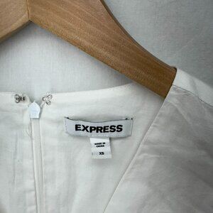 Express Blouse Crisp White Deep V-Neck Ruffle Trim Bubble Shoulder Zip Closure on Back Size XS