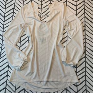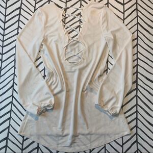 Express | size xs | blouse | stylish cross-cross back detail | semi sheer fabric | like new | very flattering |
