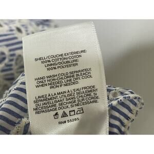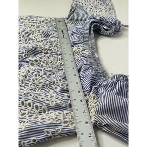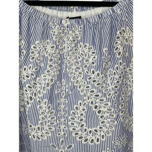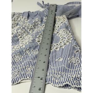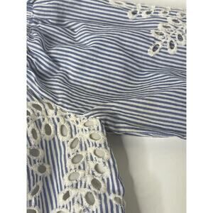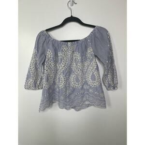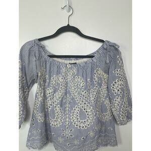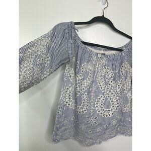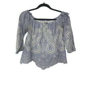 Express Blouse Eyelet Off the Shoulder Striped 3/4 Sleeve Cotton Lined Blue S